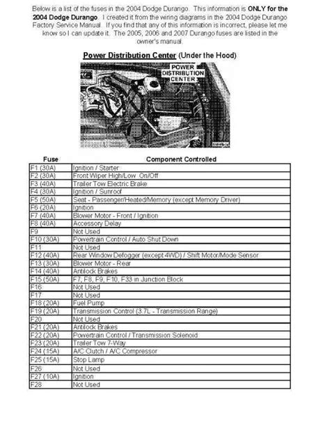 2000 Durango Fuse Panel Diagram Review